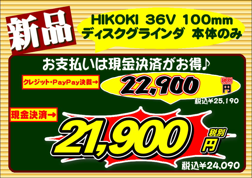 人気商品 HIKOKI 36V 100mm ディスクグラインダ G3610DC 本体のみ