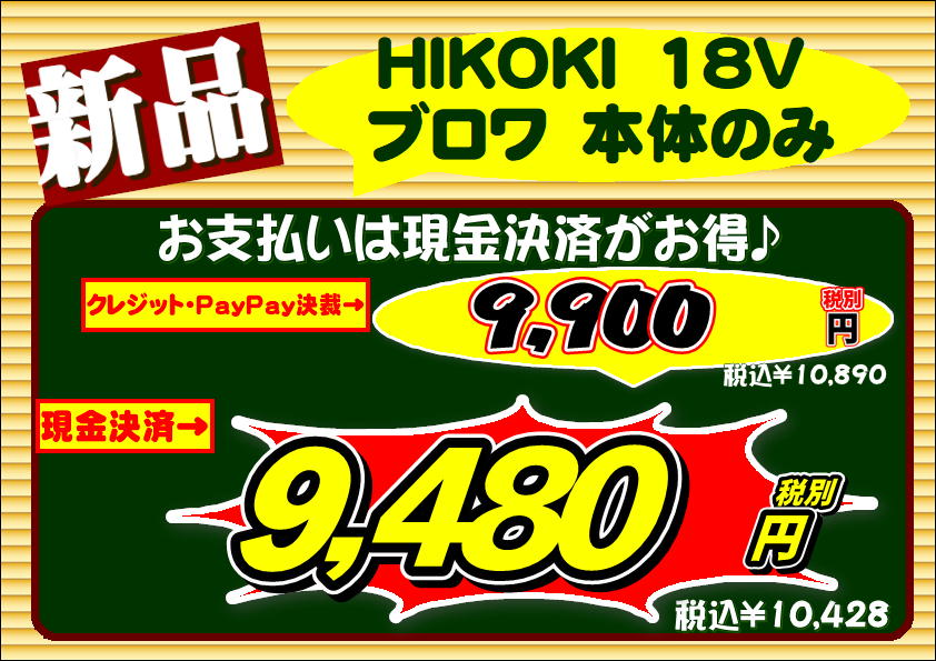 人気商品 HIKOKI 18V  ブロワ RB18DC 本体のみ